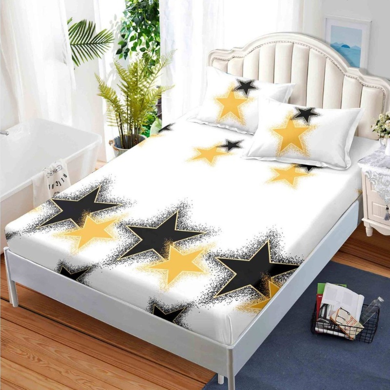 Cearsaf cu elastic si 2 Fete de Perna, Stars 160x200 cm (Finet)