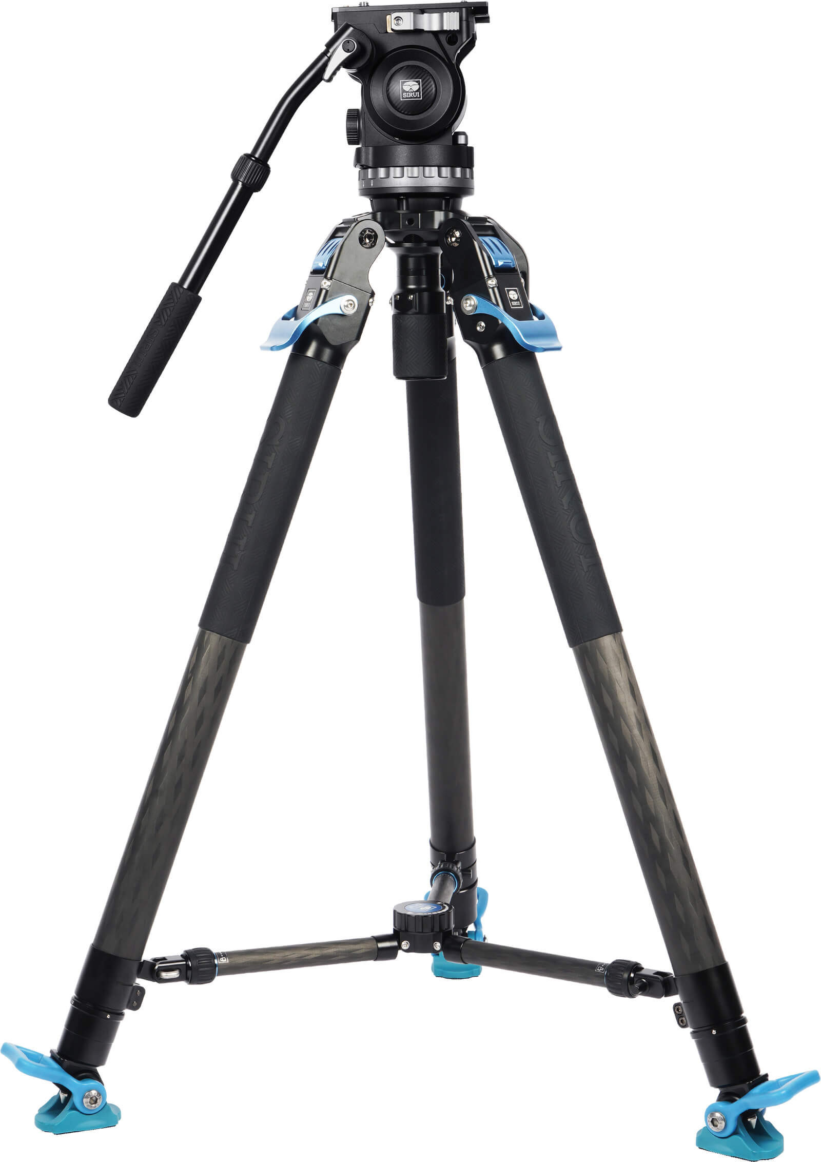 Sirui SVT-75 Pro Trepied Video Carbon, Sistem Rapid One-Step, Bol 75 mm, Sarcina 25 kg, Mid-Spreader, Maner Quick Release Inclus