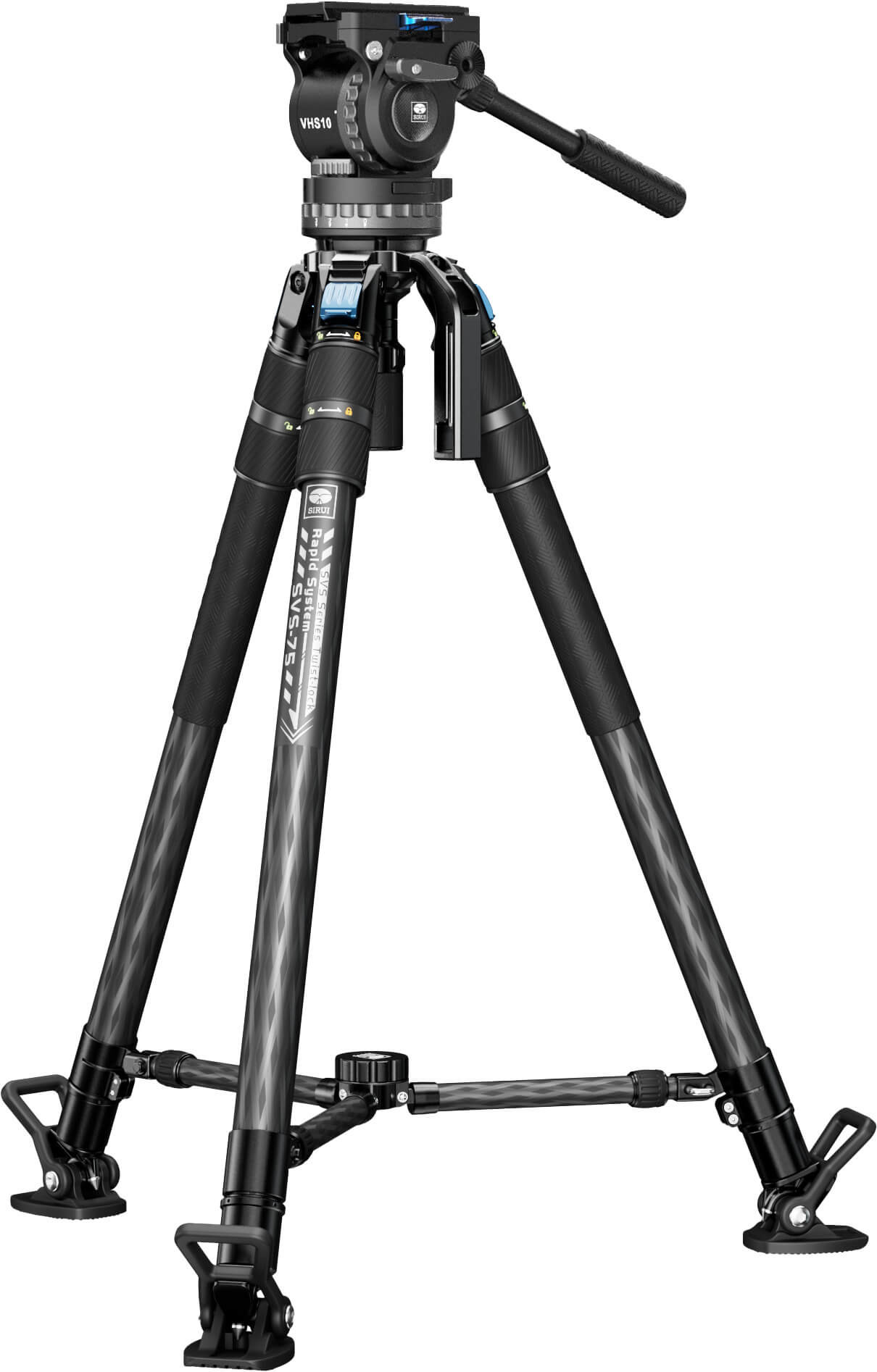 Sirui SVS75 Pro Trepied Video Carbon, Cap Fluid VHS10, Sistem Rapid One-Step Twist Lock, Sarcina 10kg, Bol 75mm, Mid-Spreader