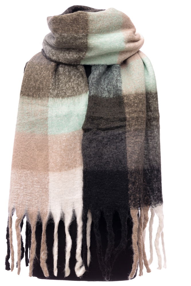 Fular cu imprimeu patrate colorate in nuante de negru, bej si vernil