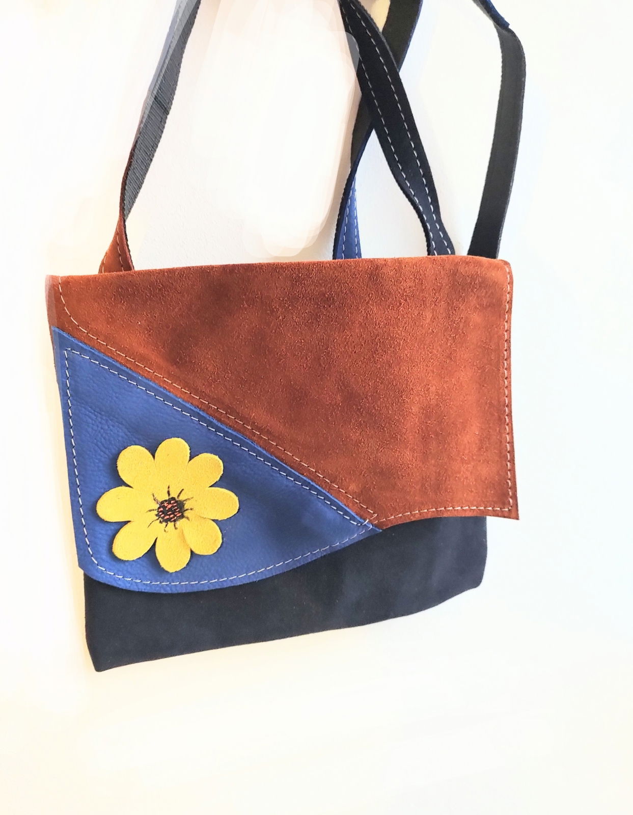 Geanta multicolora din piele naturala ,cu dalie
