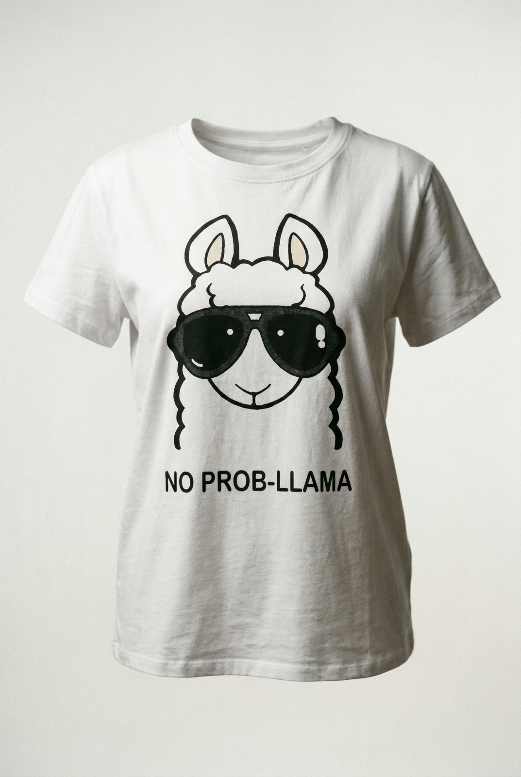Tricou alb din bumbac cu imprimeu Lama- No problamaaa - tricoul zen Talie unica