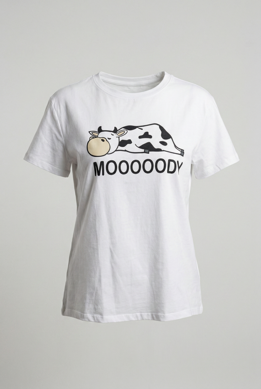 Tricou alb din bumbac cu imprimeu vacuta zen, marime mare Talie unica