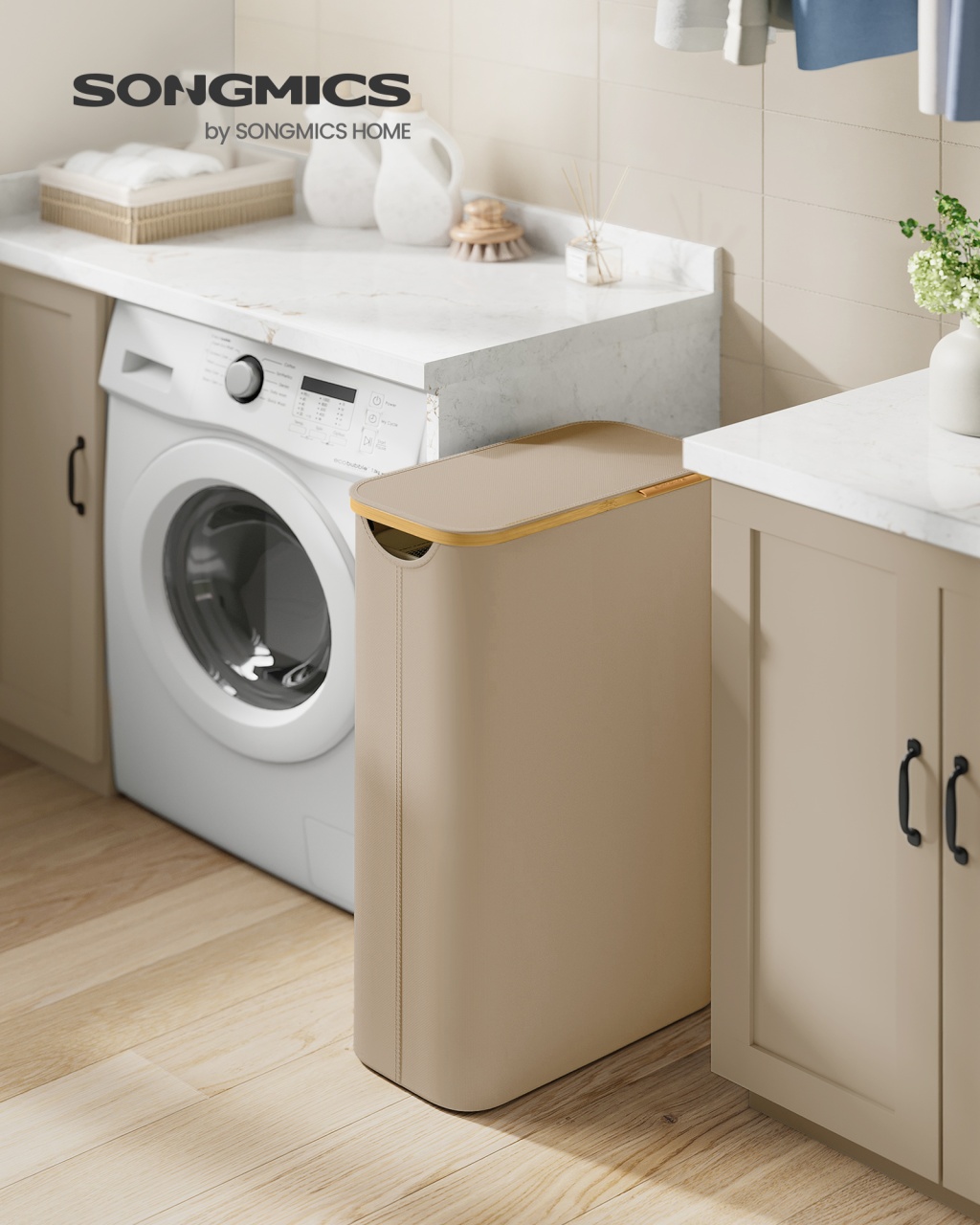 Cos de gunoi reciclabile Bej Songmics 41.5x35.5x47.6 cm