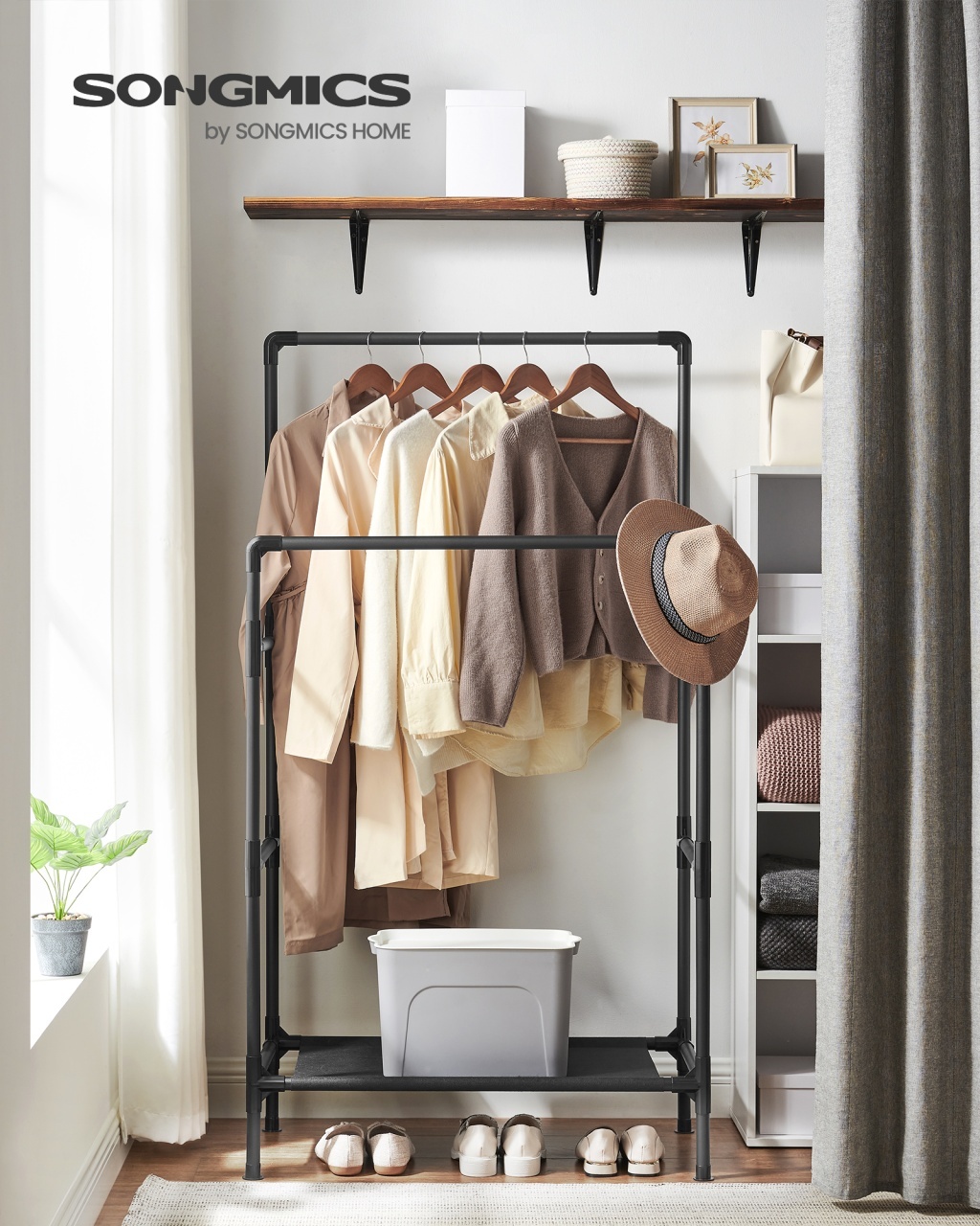 Suport pentru haine cu roti, Songmics, 110 kg, HSR62BK, Negru