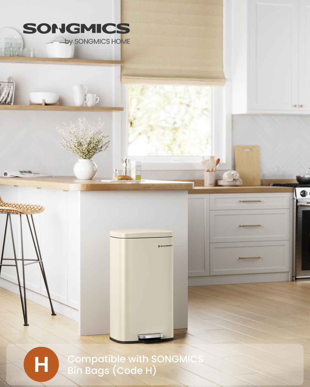 Cos de gunoi Songmics Bej 34.8x29.7x63.3 cm