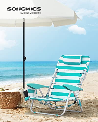Scaun de plaja, Songmics, Verde-Alb, 63x68x75 cm
