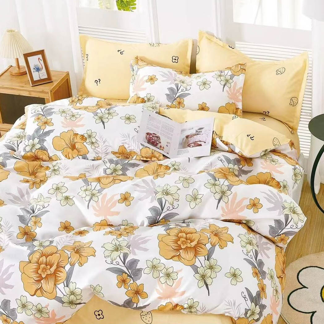 Lenjerie pat dublu, Finet, 6 piese, Alb, Galben, flori