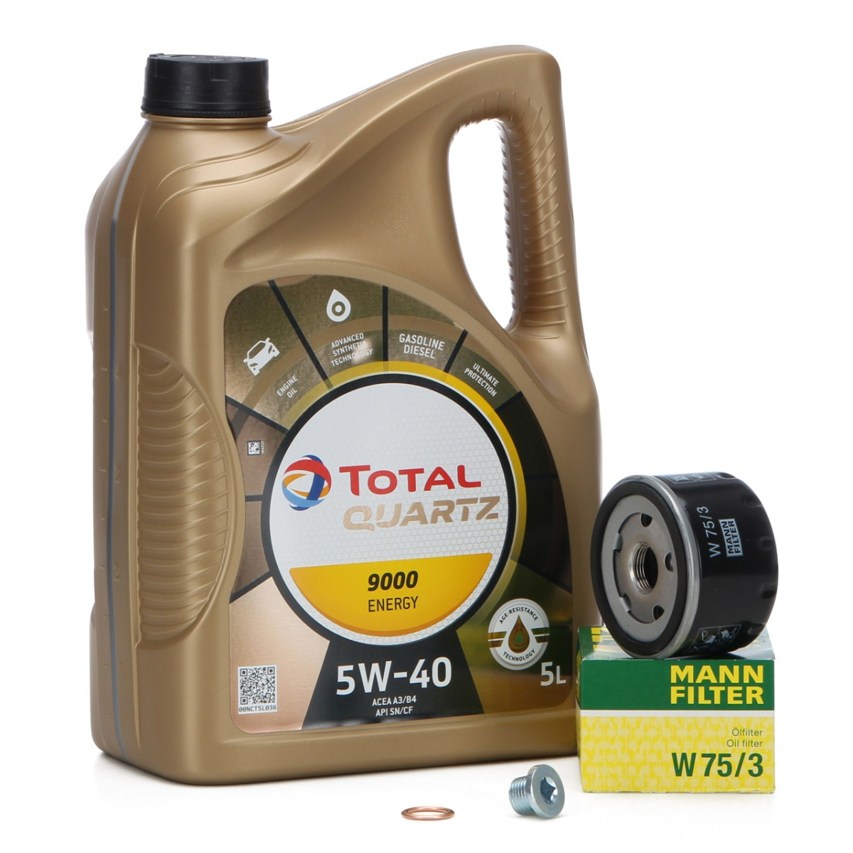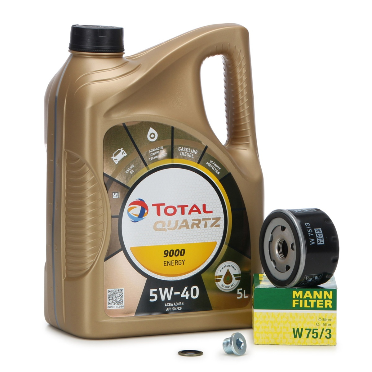 Pachet Revizie Ulei Motor Total Quartz 9000 Energy 5W-40 5L + Filtru Ulei Mann Filter W75 3 + Buson Golire Baie Ulei Fa1 518.471.001 + Garnitura Buson