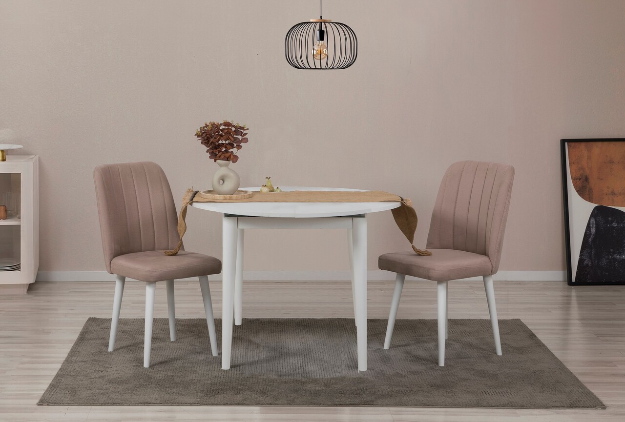 Set masa extensibila si scaune, Hanah Home, Vina 0900, Alb / Piatra