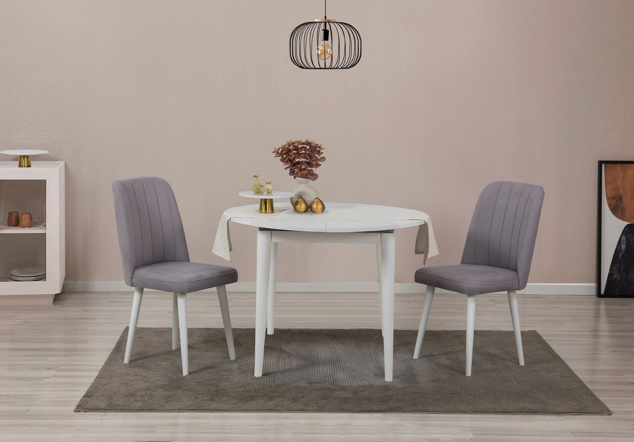 Set masa extensibila si scaune, 3 piese, Hanah Home, Vina 0701, Alb/Gri