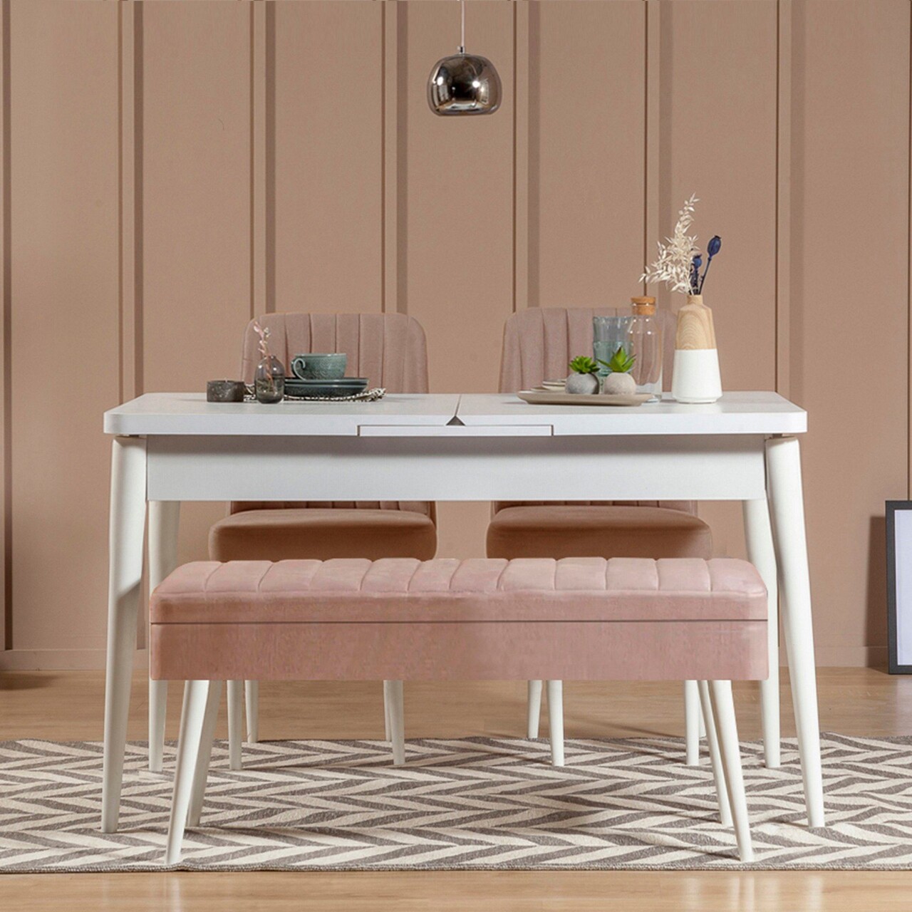 Set masa extensibila si scaune, 3 piese, Hanah Home, Vina 1005 3 v2, Alb / Crem