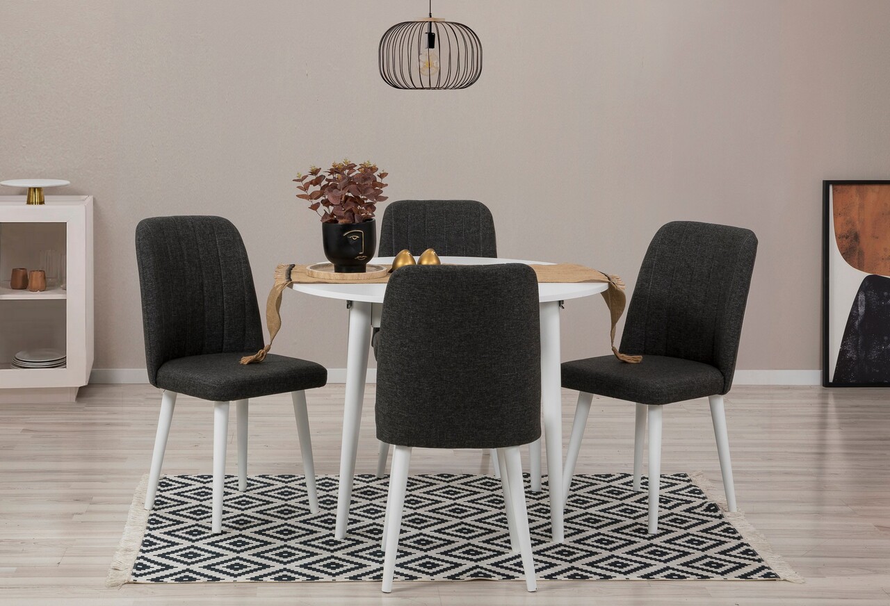 Set masa extensibila si scaune, Hanah Home, Vina 1053, Alb / Antracit