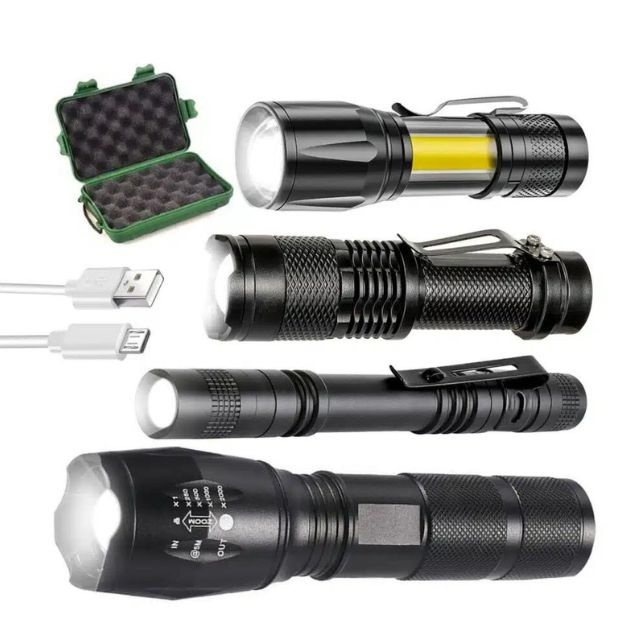 Set 4 lanterne LED - Reincarcabile USB - Focus Ajustabil - Impermeabile