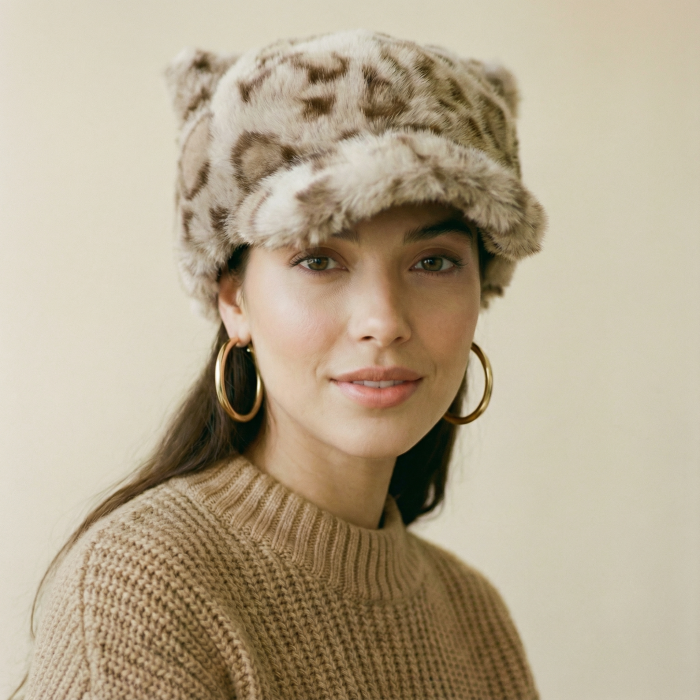 Bereta frantuzeasca cu angora, imprimeu animal print pe fond bej