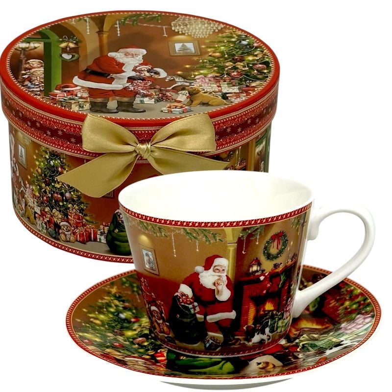 Cadou de Crăciun – Ceașcă ceramică cu farfurioară în cutie festivă d 16cm,h 9cm, en-gros