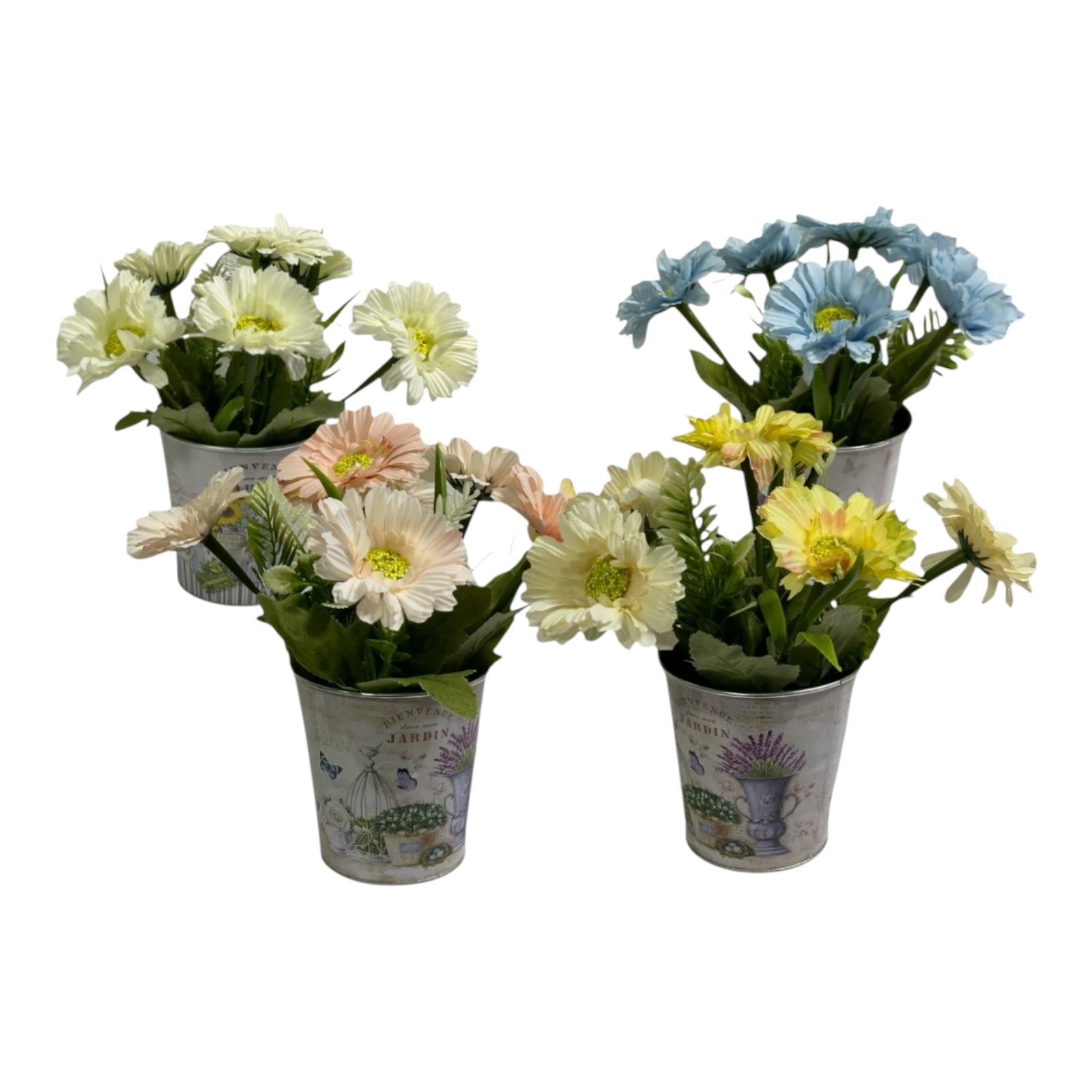 Ghiveci metalic decorativ engros Flori artificiale mix culori 20cm 751-2