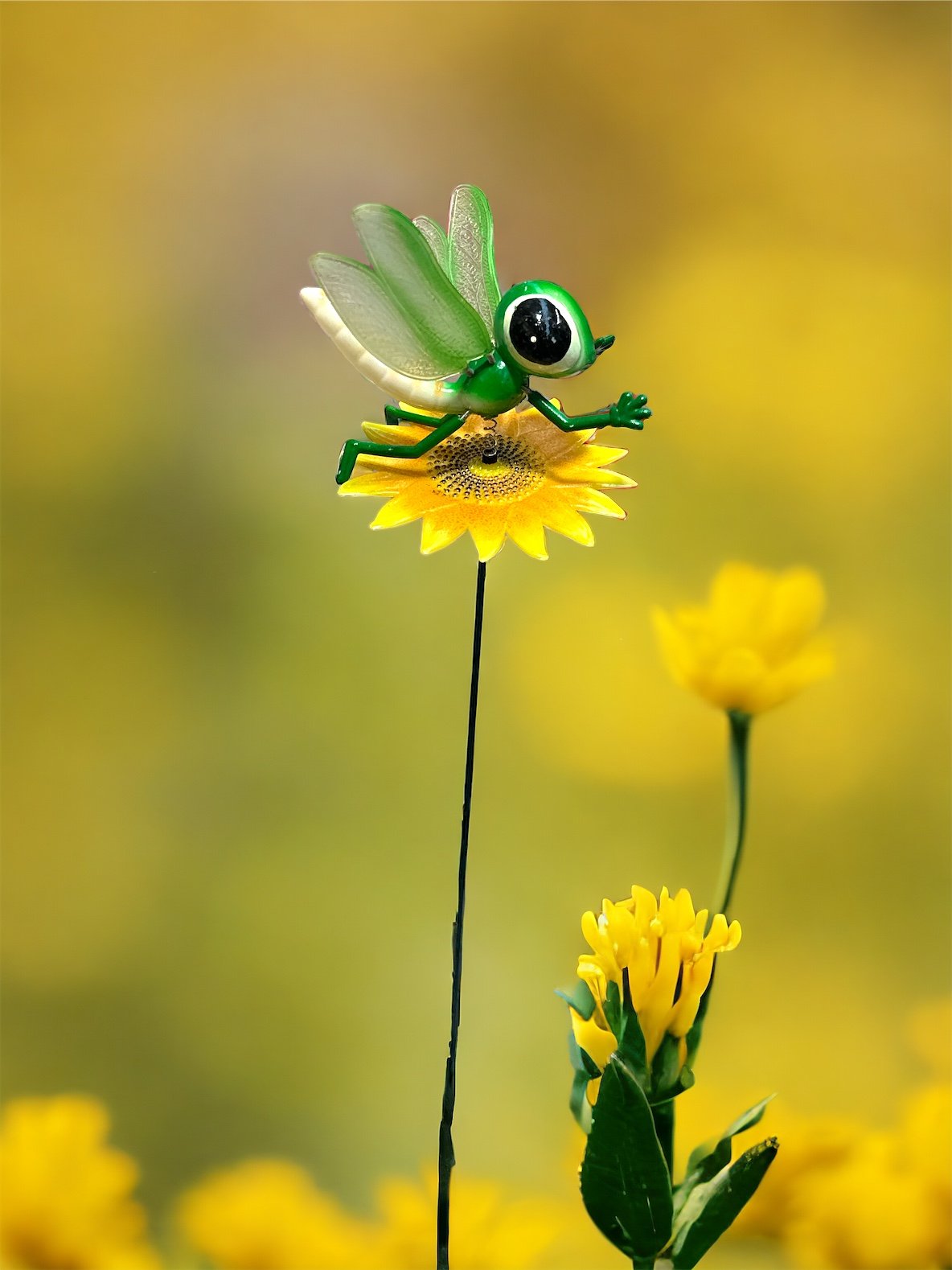 Decoratiune Engros gradina, plastic, libelula pe bat, 74 cm
