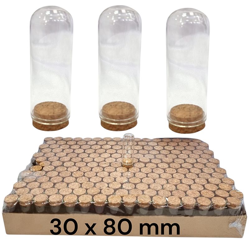 Fiole ( CUPOLA) din sticla cu dop de pluta 30 x 80 mm engros set 208/buc