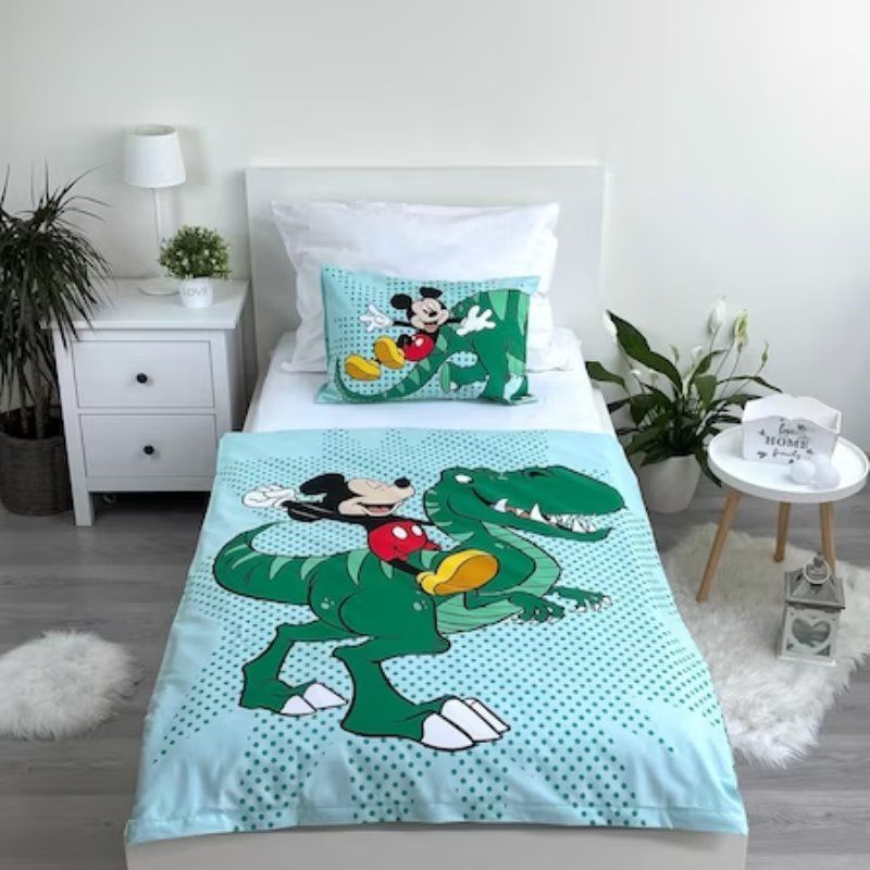 Set lenjerie de pat copii Jerry Fabrics, Mickey Mouse, color, bumbac, 1 persoana, 2 piese, multicolor, 100x135 cm, 40x60 cm Engros