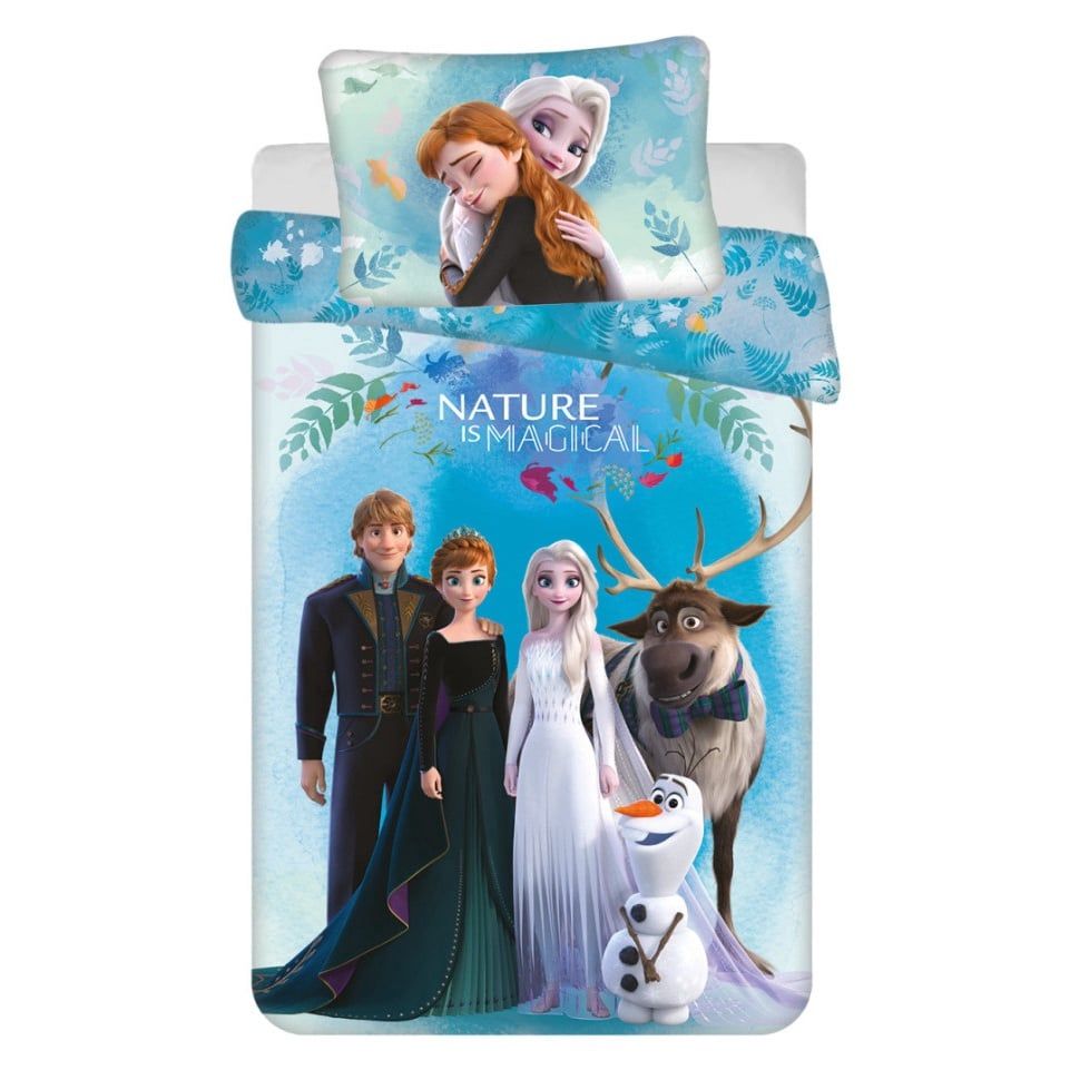 Set lenjerie pat copii, 100% bumbac, multicolor, 2 piese, 100A 135 cm, 40A 60, Nature is Magical, Frozen Engros