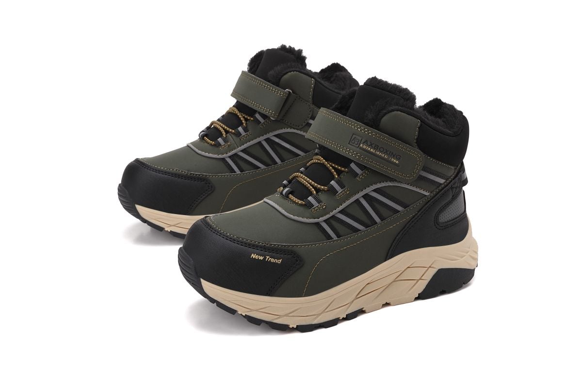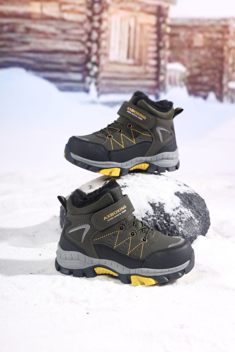 Ghete de Iarna Copii, Imblanite, Inchidere Siret Elastic+Arici, Piele Ecologica, Talpa Antiderapanta, Impermeabile, Engross, Marimi 29-36 ,8buc/bax kaki