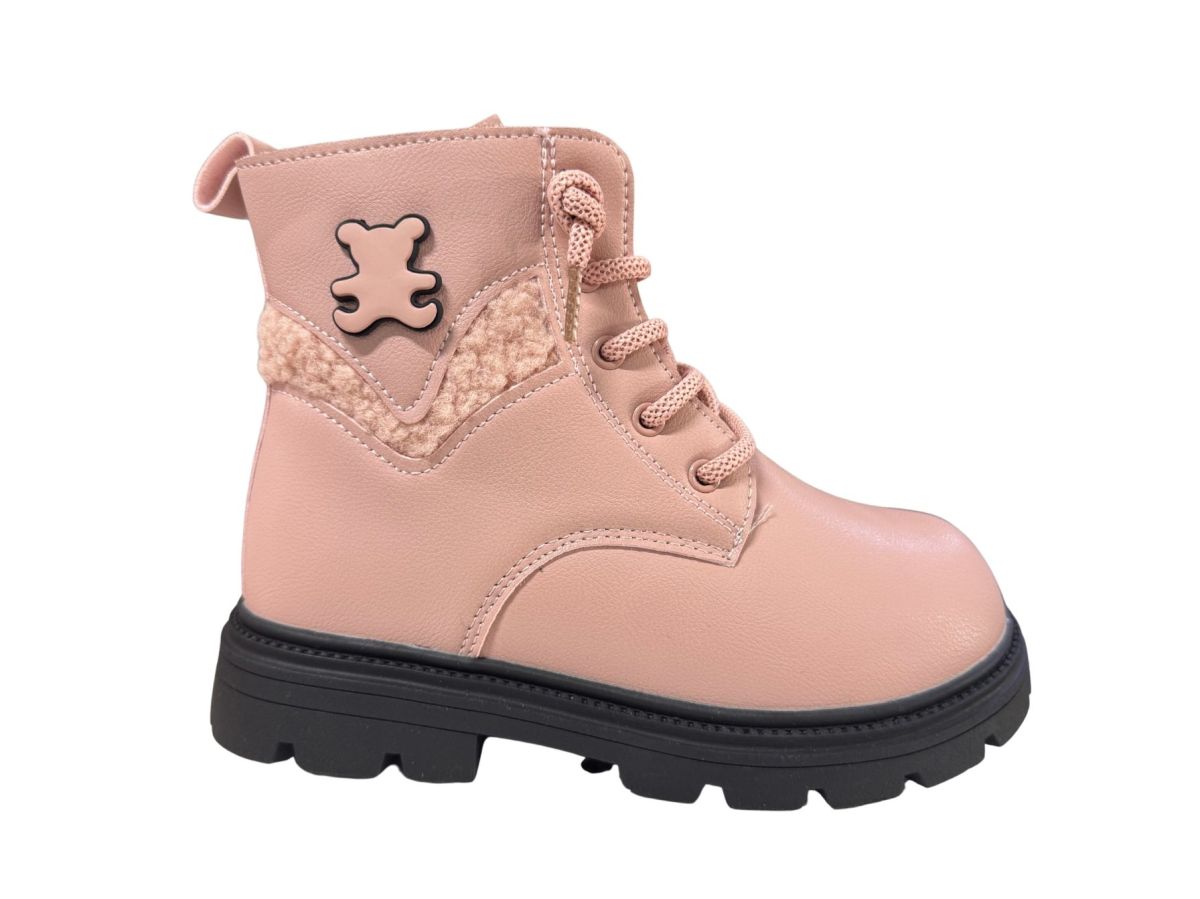 Ghete Iarna Fete, Accesoriu Ursulet, Piele Ecologica, Fermoar+Siret, Interior Imblanit, Talpa Antiderapanta, Engross, Marimi 32-37 ,8buc/ bax roz