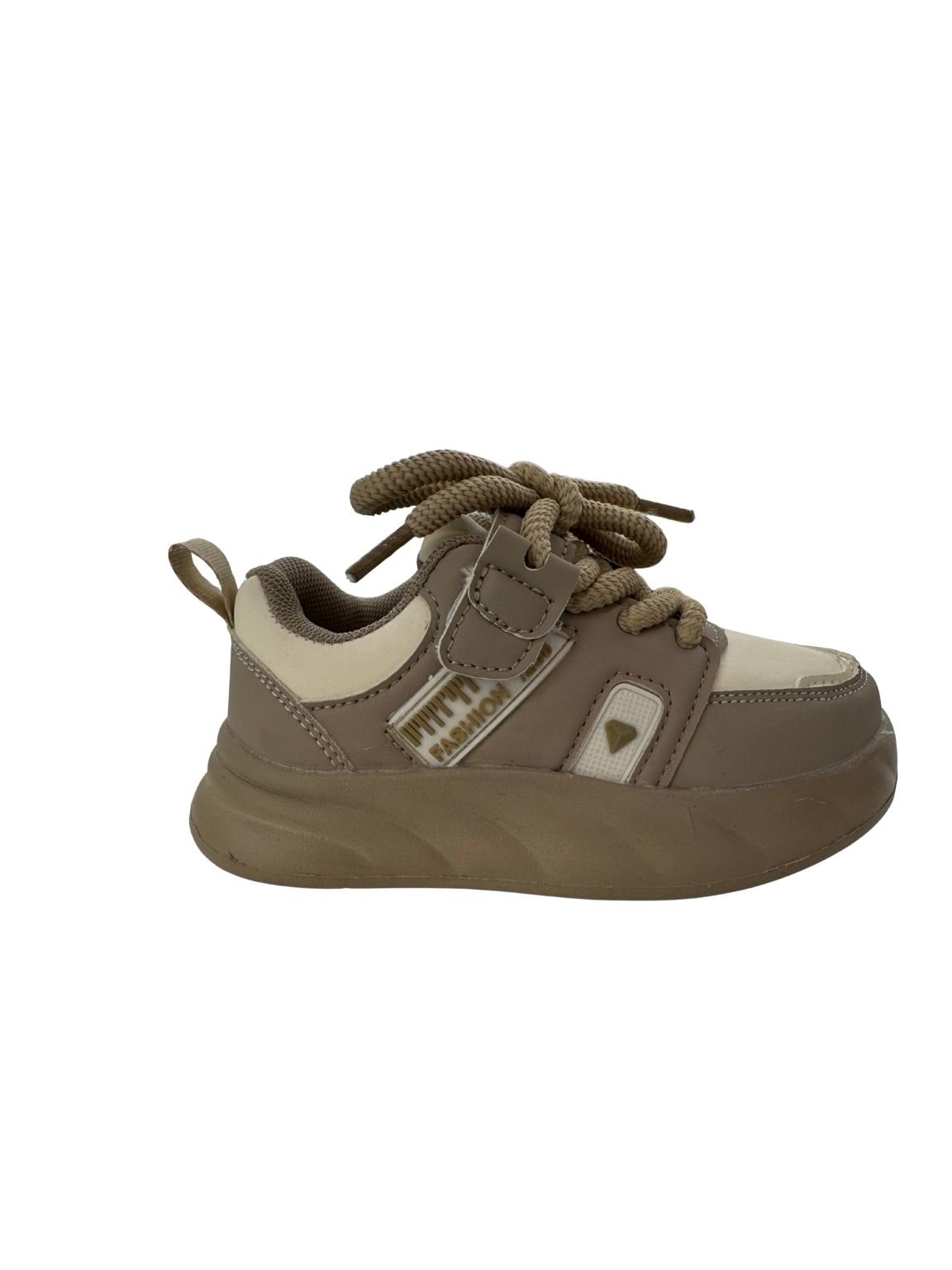 Pantofi sport copii , Talpa Flexibila, Inchidere Siret si Arici , Piele ecologica si textil, Engross, Marimi 32-37, 8buc/Bax, Maro/crem