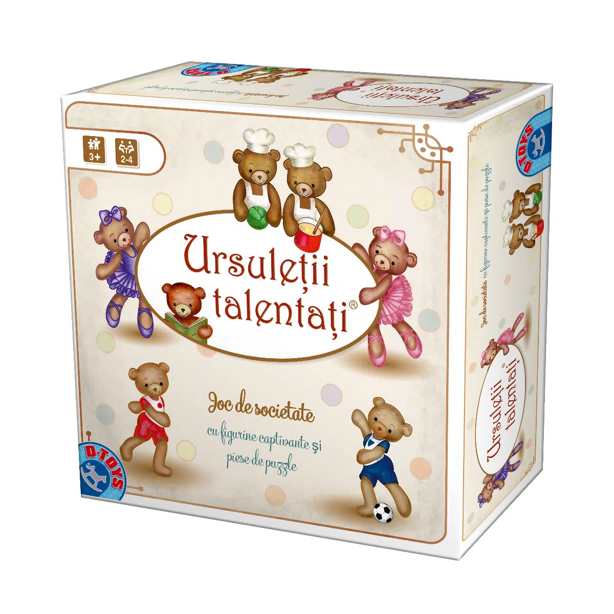 Joc de societate engros, Ursuletii Talentati, D-toys, joc cu figurine si piese de puzzle, 30x30x9 cm