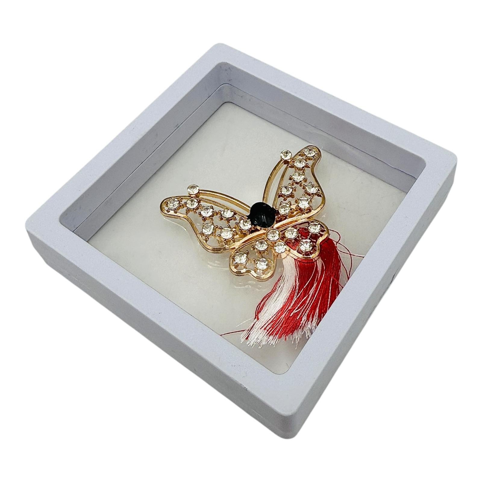 Brosa Martisor, Fluture Deosebit in cutie cu expunere 3D (alb/negru), 8.5×8.5×2cm Engros