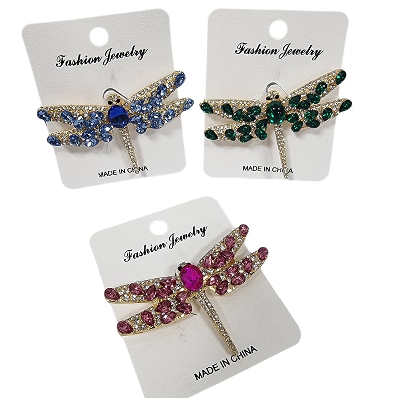 Set engros 12/buc brose elegante Libelula cu pietricele