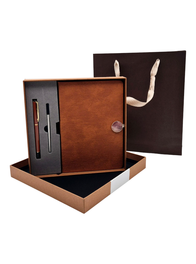 Set Cadou Engros 2 piese agenda 15x21 cm si pix , in cutie + punga cadou