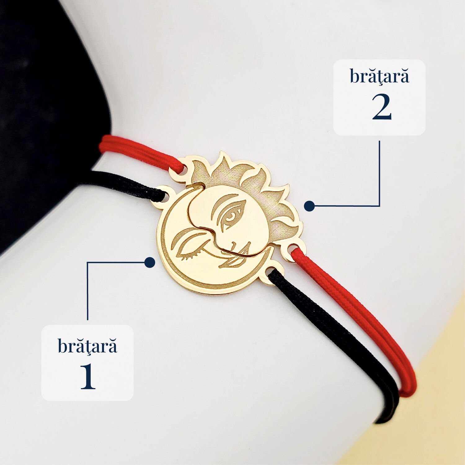 Set 2 bratari personalizate - Luna si Soare - Argint 925 placat cu Aur Galben 18K , snur reglabil