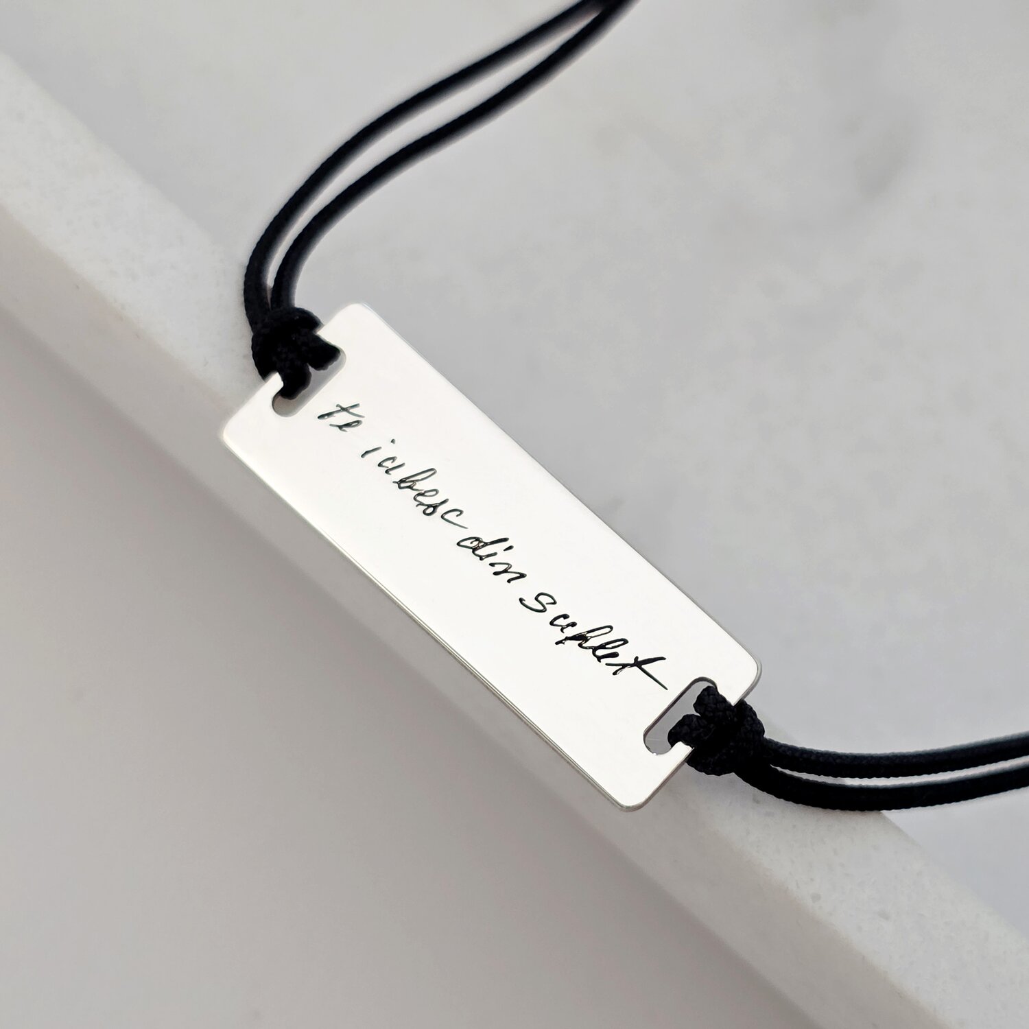 Bratara personalizata - Semnatura sau gravura scrisului de mana - Placuta Argint 925 - Snur reglabil
