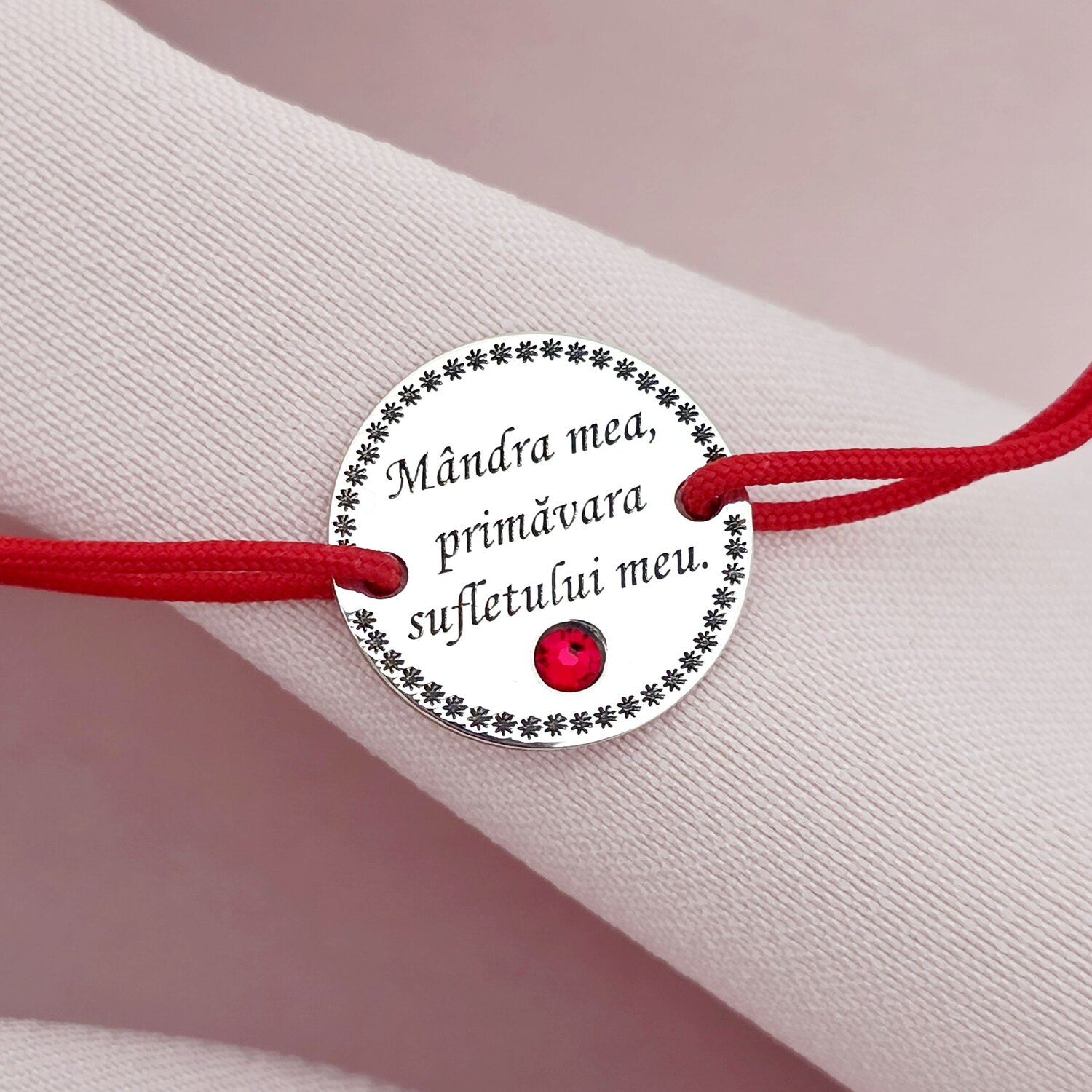 Bratara logodnica azi, sefa inimii mele mereu - Argint 925 si email rosu - Snur reglabil