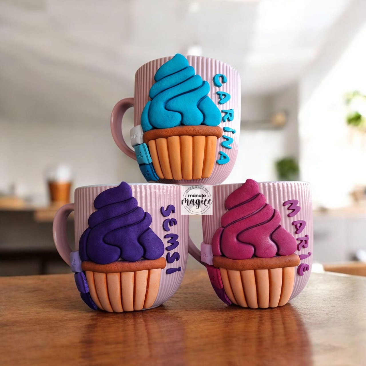 Cănuță personalizată cu brioșă, lucrată manual din lut polimeric ??