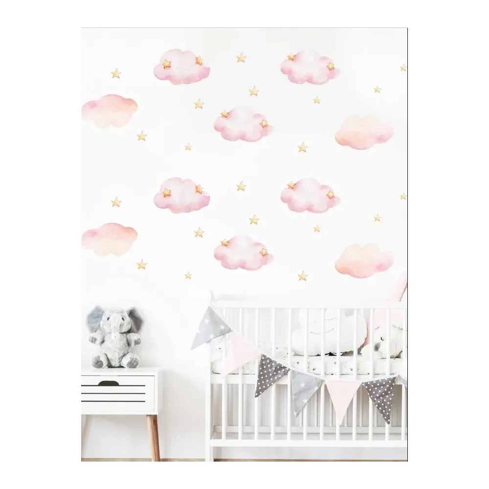 Sticker Perete Autocolant Ursulet pe Nori Roz - 63 x 81 cm