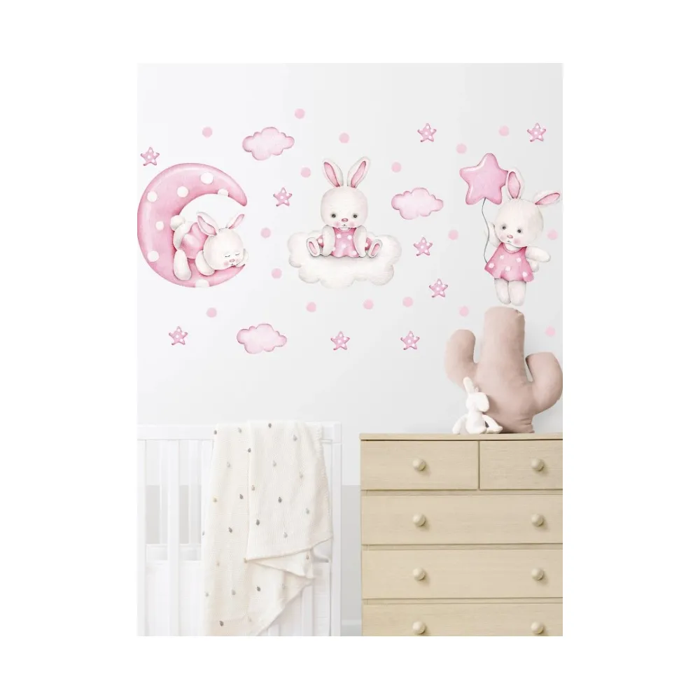 Sticker Perete Autocolant Iepurasi si Norisori Roz