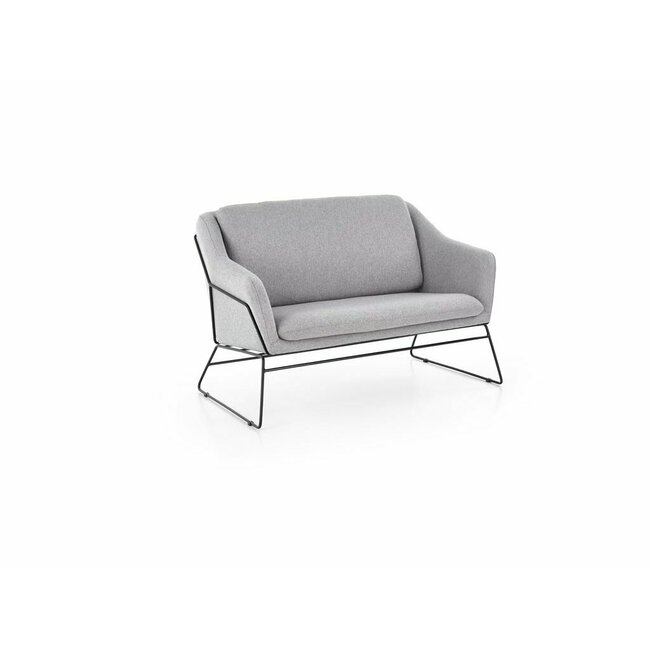 Canapea Soft 2XL, catifea premium, structură metalică și oțel mat, 125x77x83 cm, gri deschis/negru