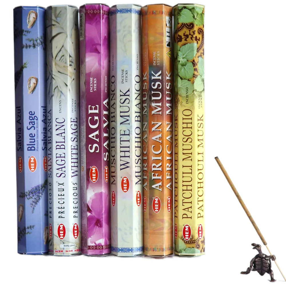 Kit Aromaterapie 120 Betisoare Parfumate, HEM, Sage si Musk, Cadou Suport Broscuta Testoasa