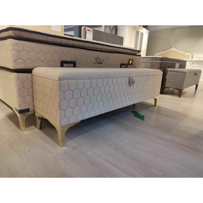 Bancă cu ladă de depozitare Petek, catifea premium, 140x34x45 cm, crem