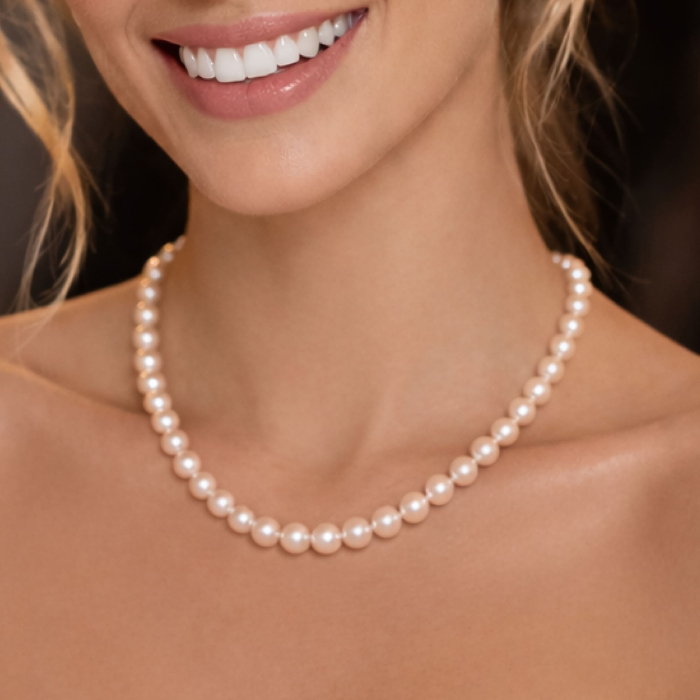 Colier Perle Akoya Japoneze 7,5, 8 mm, Calitate AAA, Inchizatoare Aur Galben 14K KASKADDA