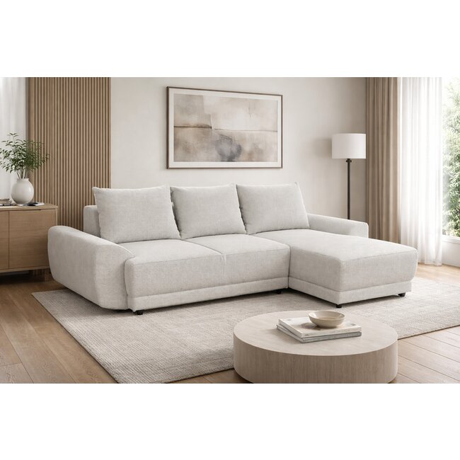 Colțar extensibil Runner, spătar rabatabil și ladă depozitare, cadru lemn și poliuretan, 266x196 cm, personalizabil, diverse culori
