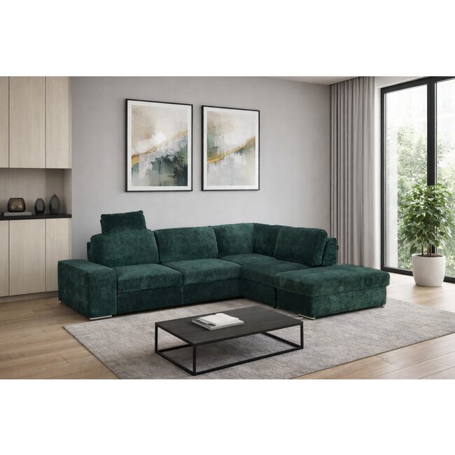 Colțar extensibil Brazil, tetiere rabatabile și brațe reglabile, cadru lemn și poliuretan, 286x242 cm, diverse culori