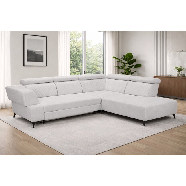 Colțar extensibil Diamante, tetiere rabatabile și spătar reglabil, cadru lemn și poliuretan, 311x257 cm, diverse culori