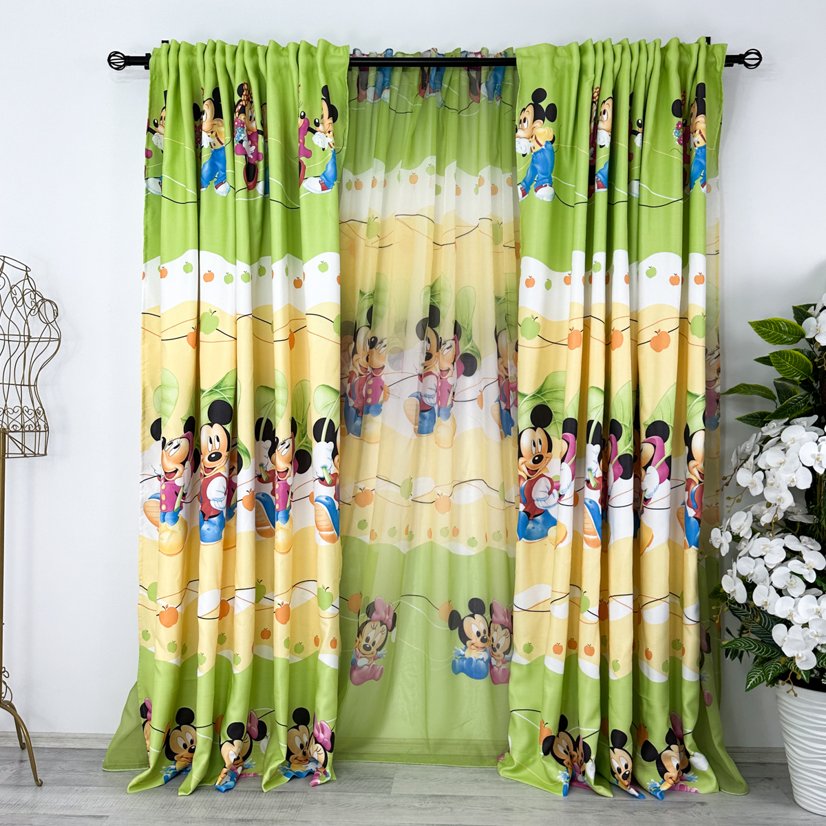 Set 2 Draperii Satinate pentru copii, Mickey si Minnie, 140cm latime x 260cm inaltime, cu tiv lat pt bara