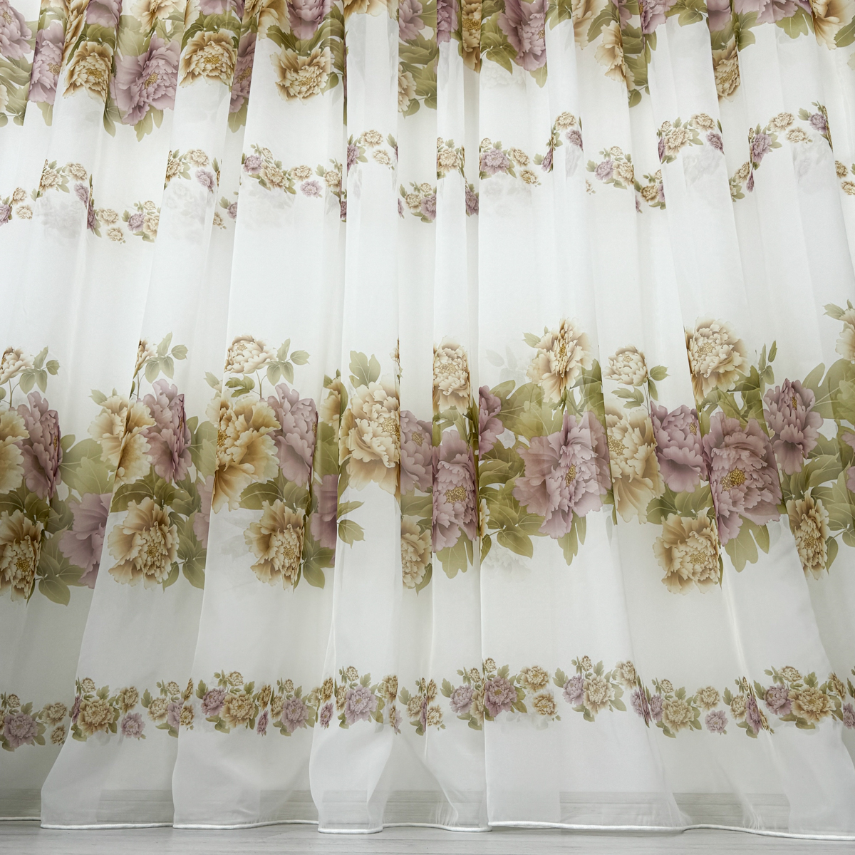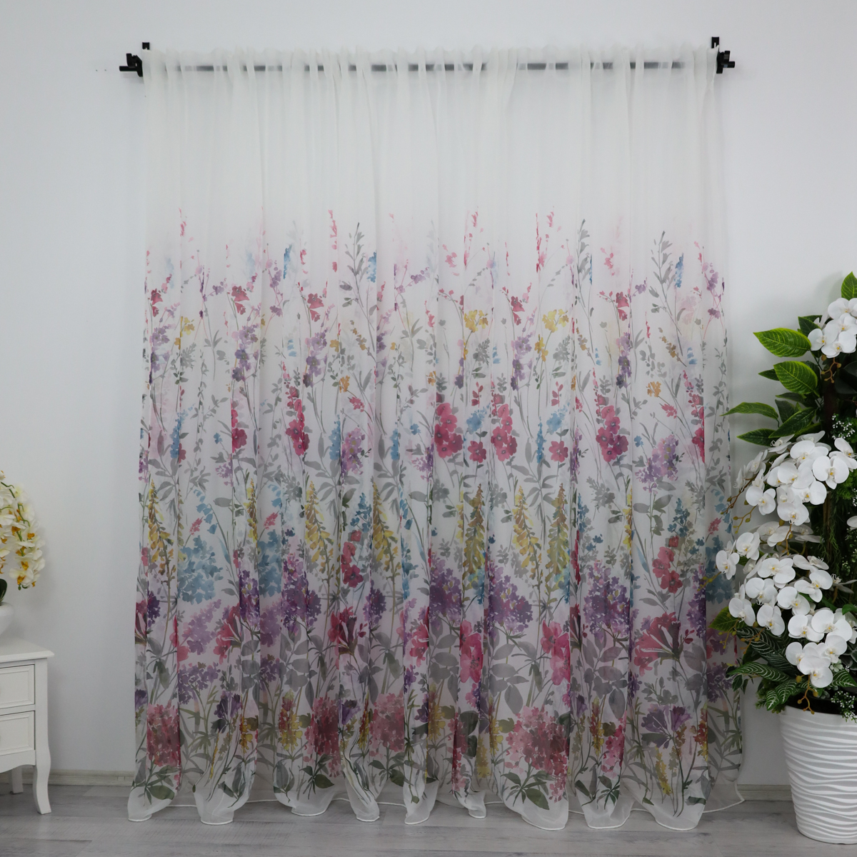 Perdea din Voal imprimat, Alb cu flori de toamna, 140cm latime x 260cm inaltime, cu rejansa pt bara