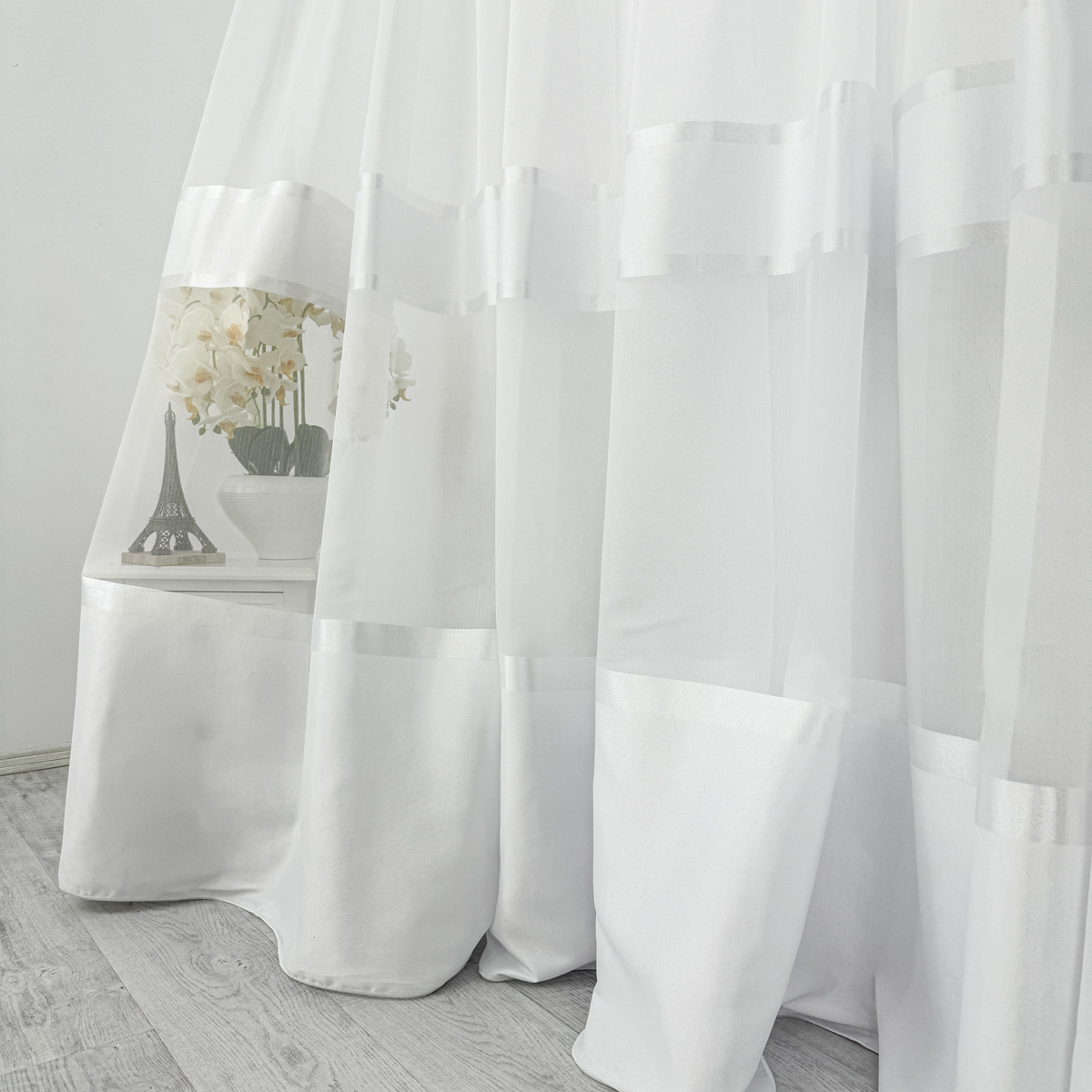 Perdea Diamond din Matase cu Banda Satinata, Alb - Gri, 140cm latime x 260cm inaltime, cu rejansa pt bara