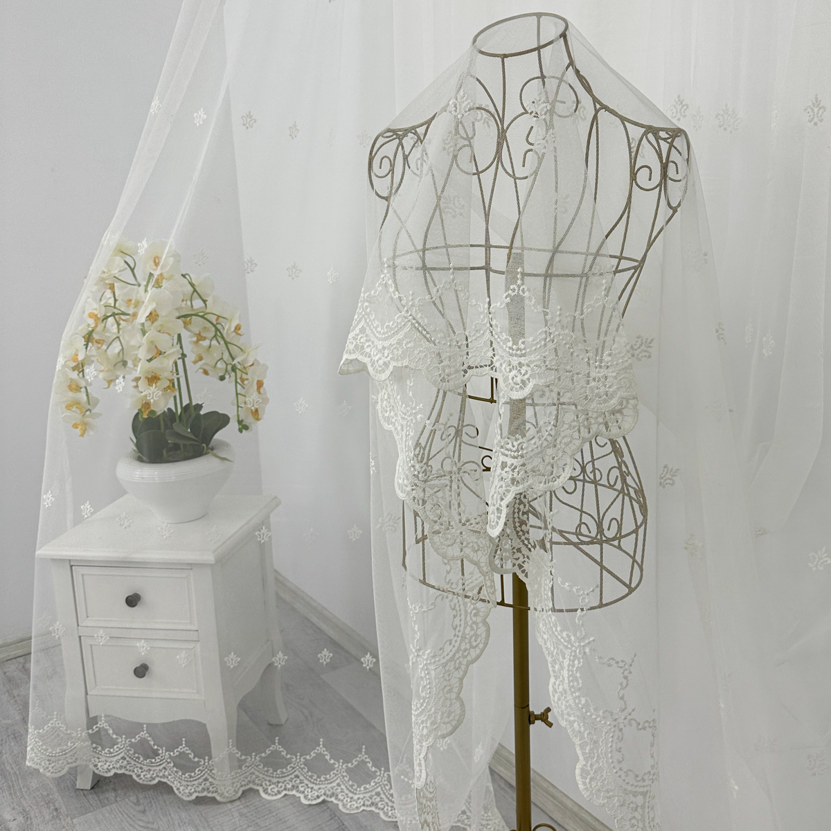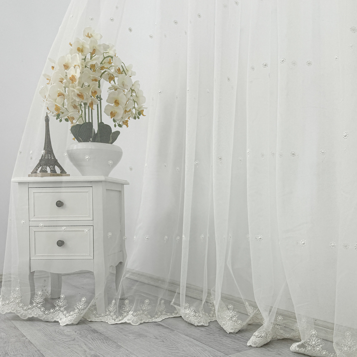 Perdea Cicek din Tulle cu Broderie, Alb, 140cm latime x 260cm inaltime, cu rejansa pt bara