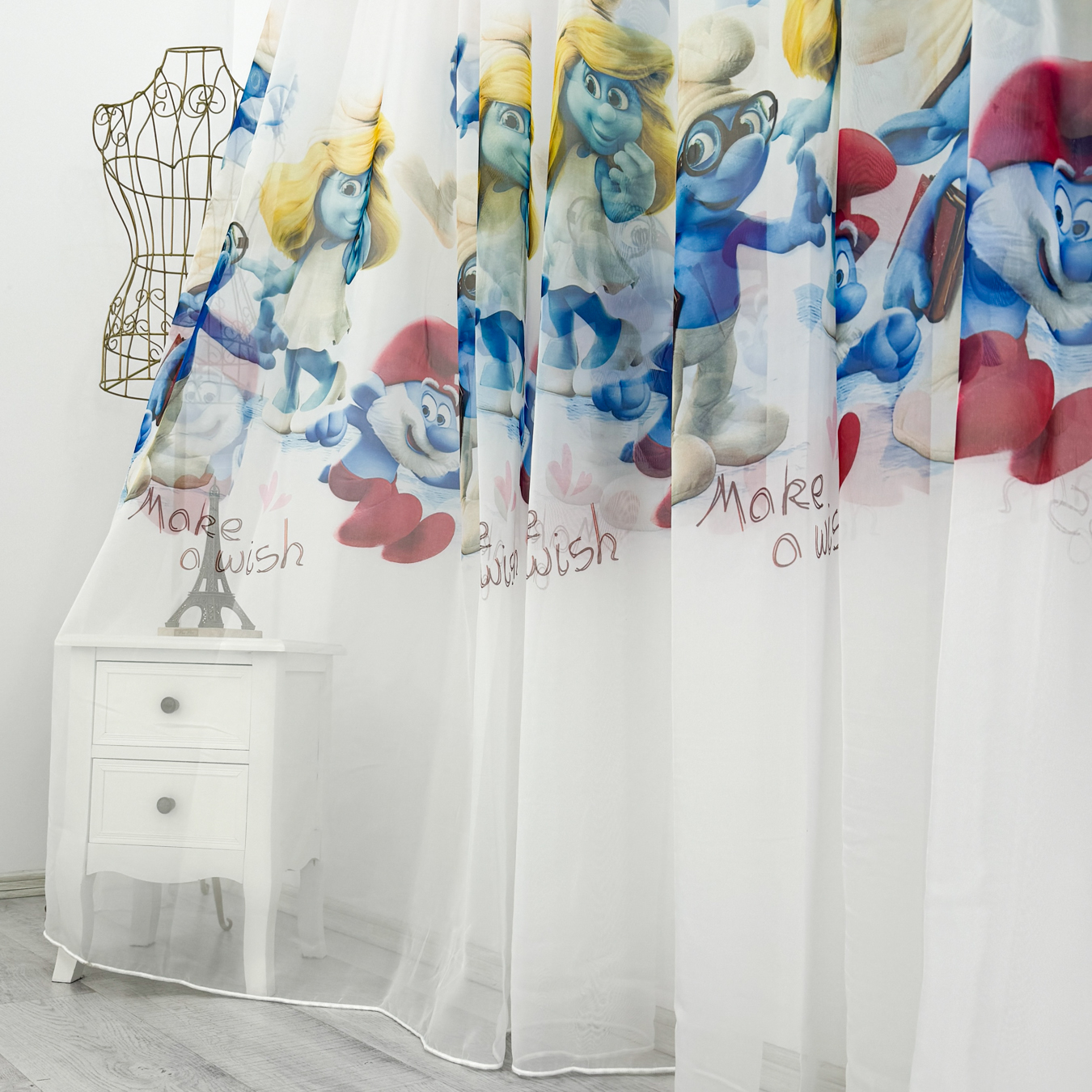 Perdea pentru copii din matase, model imprimat Smurfs, 140cm latime x 260cm inaltime, cu rejansa pt bara